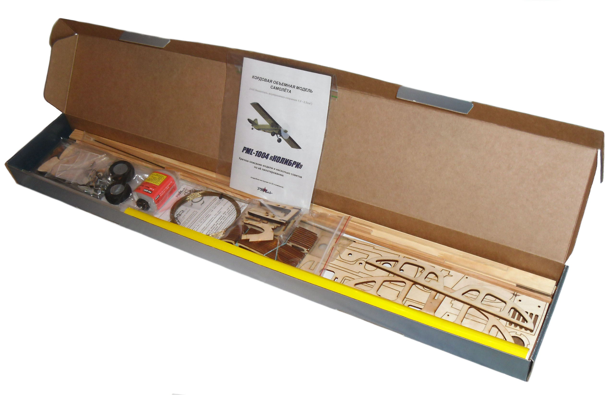 Модель весит 0,5 кг без двигателя и топлива, что делает ее легкой и быстрой в управлении. Важно отметить, что двигатель в комплект не входит, и рекомендуется использовать агрегат мощностью от 2,5 куб. см. Набор поставляется с полным комплектом деталей, включая шасси и элементы топливной системы, а также корды с замками и заготовку для ручки управления. Это позволяет сразу приступать к сборке и тренировке, делая процесс удобным и простым.
