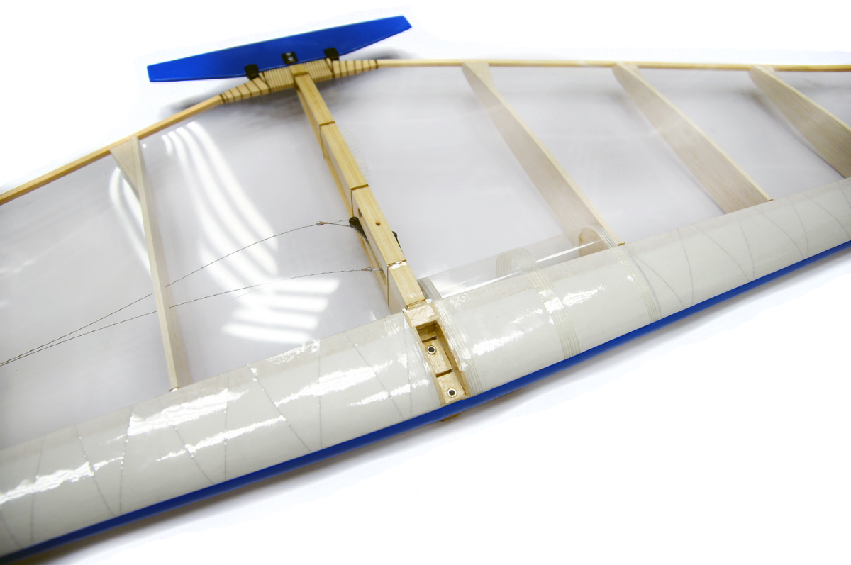 Размах крыла составляет 1185 мм, что обеспечивает высокую подъемную силу и стабильность во время полета. Хорда модели варьируется от 335 мм до 155 мм, что позволяет адаптировать самолет под различные стили управления. Вес без двигателя составляет всего 220-235 граммов, что делает модель легкой и удобной в запуске и обслуживании. Толщина профиля в корне 43 мм и в конце 30 мм способствует хорошей аэродинамике.