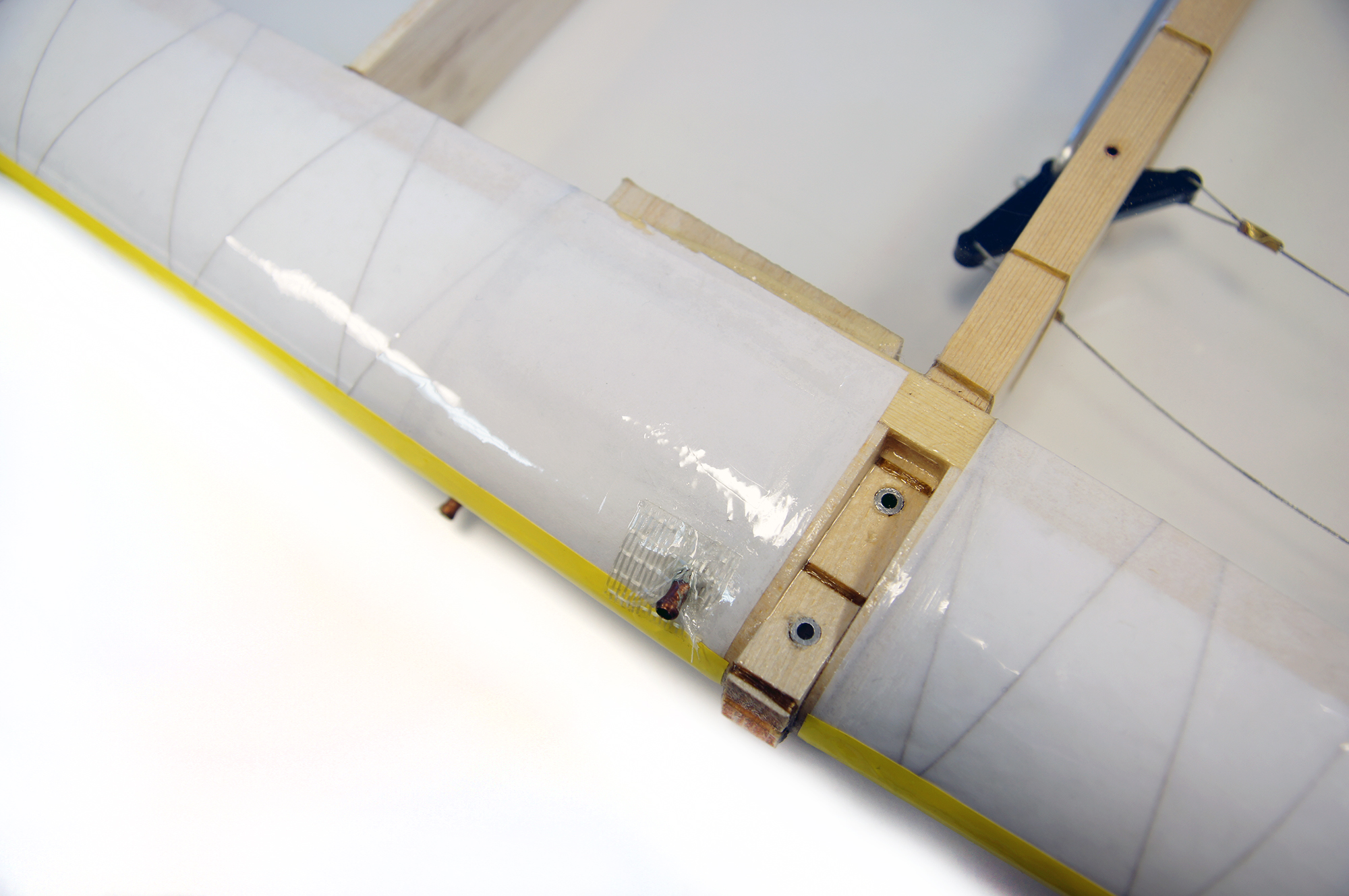 Классическая конструкция модели выполнена из качественных материалов, таких как бальза, сосна и пенопласт. Благодаря использованию бальзовых элементов плотностью 0,1 гр/дм², самолёт отличается лёгкостью и прочностью. Обтяжка лавсановой плёнкой толщиной 25 мкм способствует не только эстетическому виду, но и повышенной износостойкости, защищая модель от внешних воздействий.