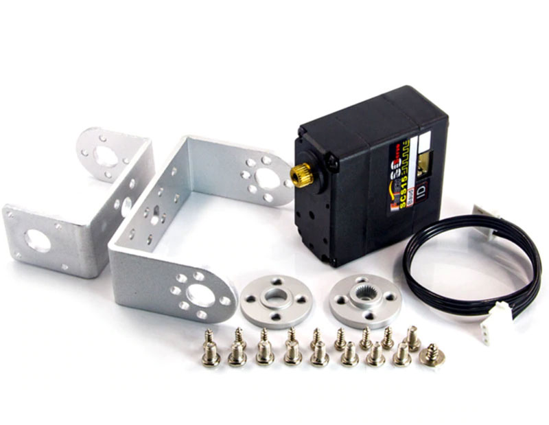 За счет компактных размеров (40 мм в длину, 20 мм в ширину и 40,5 мм в высоту) и относительно легкого веса (56 г) данный сервопривод легко вписывается в различные сборки, не добавляя лишнего объема. Длина кабеля составляет 15 см, что позволяет удобно размещать его в конструкции.
