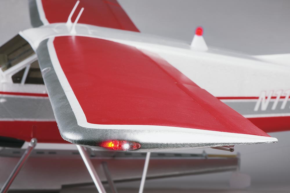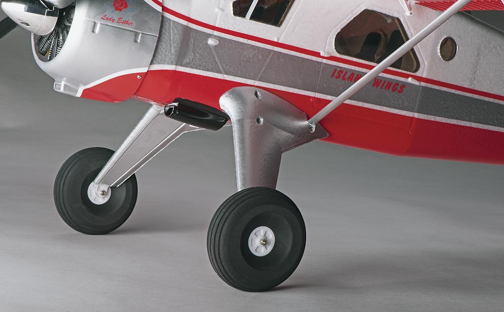 Flyzone DHC-2 Beaver оснащен реалистичными закрылками и габаритными огнями, что делает процесс полета еще более увлекательным и близким к реальности. Модель комплектуется двумя видами шасси: для взлета с грунтовых площадок и поплавками для комфортного взлета с водной поверхности. Это обеспечивает универсальность использования и возможность подготовки к полетам в различных условиях.