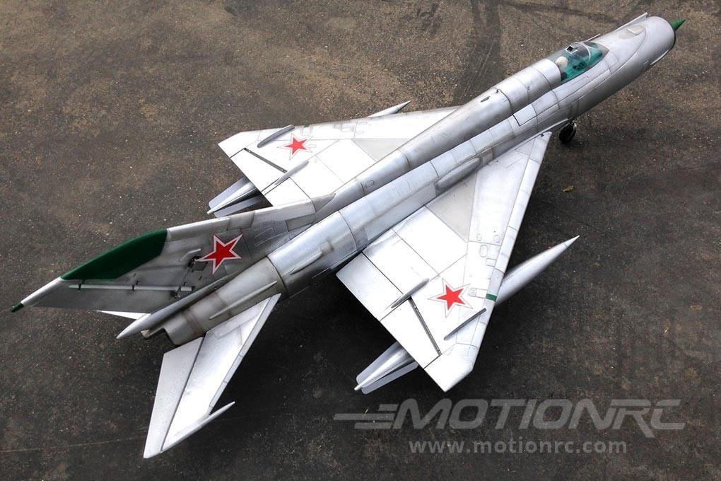 Модель MiG-21 обладает размахом крыла 800 мм и длиной 1730 мм, что обеспечивает отличные аэродинамические характеристики и стабильность в воздухе. Легкий и прочный корпус весит всего 2200 г, что дополнительно увеличивает маневренность и улучшает характеристики полета. Благодаря своей конструкции модель легко собирается и настраивается, что позволяет быстро приступить к полетам.