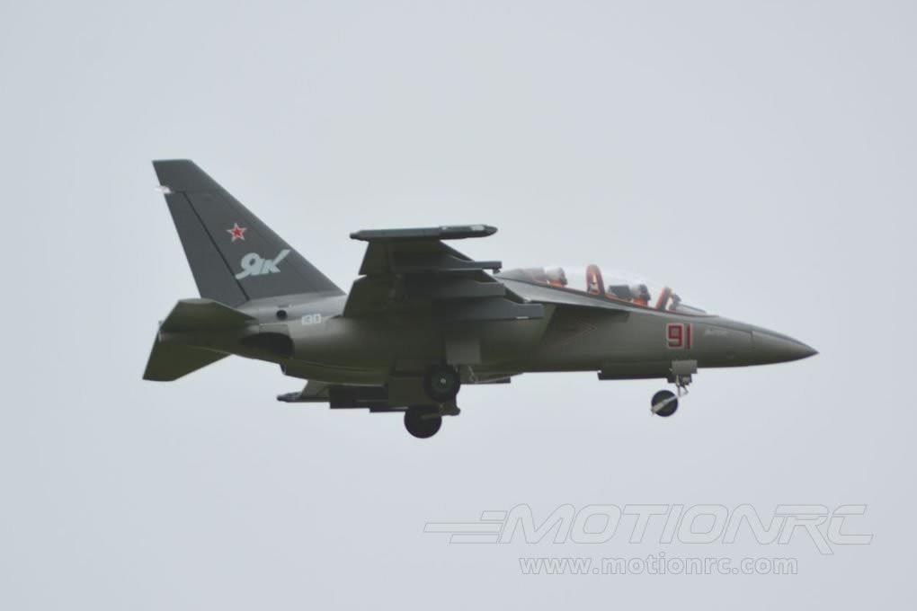Yak-130 поддерживает электронное убирающееся шасси с алюминиевыми амортизирующими стойками, что делает взлет и посадку более плавными и эффектными. Модель поставляется в виде PNP, что позволяет легко подключить необходимые радиокомпоненты и сразу отправиться в небо.