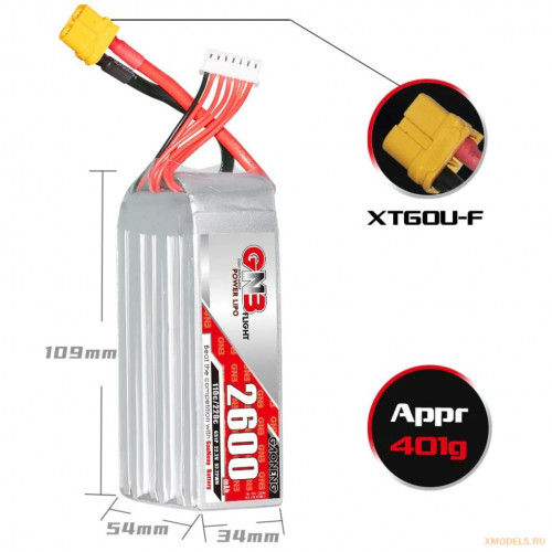 Аккумулятор GAONENG GNB 2600 мАч 120C 22.2V обеспечивает надежную и стабильную работу ваших устройств благодаря высокой ёмкости и мощному току разряда. Этот литиум-полимерный аккумулятор прекрасно подходит для использования в радиоуправляемых моделях, дронов и других энергозависимых устройствах, где необходим высокий уровень производительности.