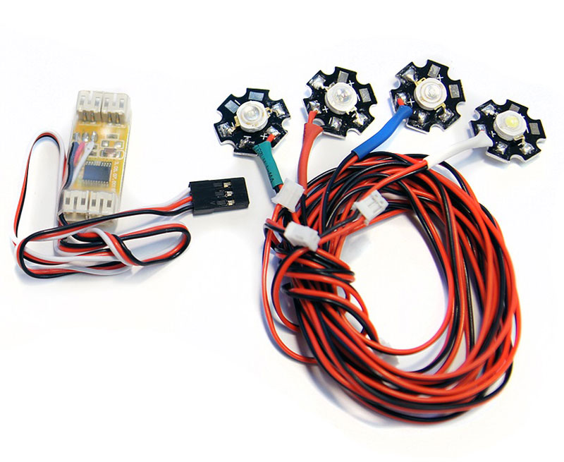 Кроме того, эти огни легкие, их вес составляет всего 31 грамм, что не добавляет лишней нагрузки вашему квадрокоптеру. Каждый из цветных светодиодов – белый, красный, синий и зеленый – мощный и яркий, что делает их отлично заметными на значительном расстоянии.