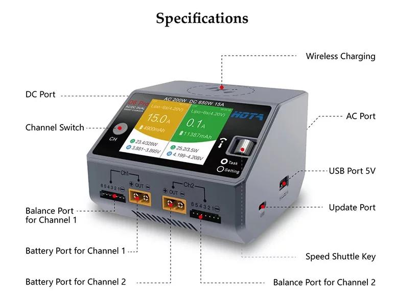 - 1 × Зарядное устройство HOTA D6 Pro;