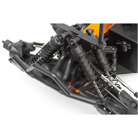 Конструкция включает алюминиевое шасси, которое обеспечивает прочность и легкость, а также улучшенные амортизаторы для стойкости на неровной поверхности. Удобный передатчик на 2,4 ГГц гарантирует мгновенный отклик управления, а возможность настройки регулятора с помощью программатора добавляет пользователю гибкости в настройке модели под свои предпочтения.