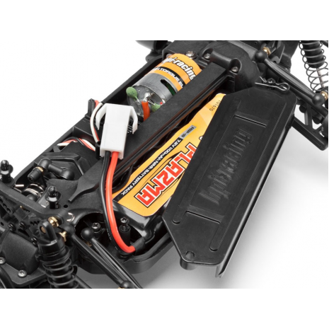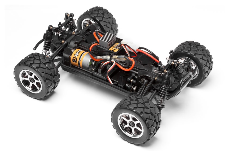 Модель поставляется в полной сборке, что позволяет сразу начать эксплуатацию. В комплект включены: 2-канальная аппаратура HPI TF-40 с частотой 2.4 ГГц, аккумулятор NiMh на 7.2V ёмкостью 1100 мАч, зарядное устройство, а также батарейки для пульта управления. Это очень удобно, поскольку вам не нужно дополнительно тратить время на поиск и приобретение необходимых компонентов.