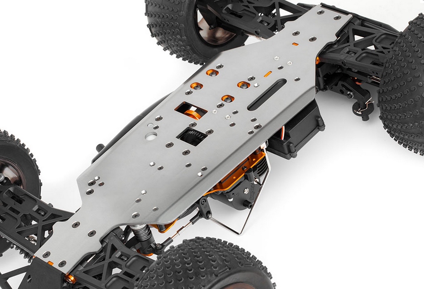 Изюминкой этой модели является влагозащищенная электроника, включая серво руля и радиобокс, что позволяет использовать её в различных погодных условиях без опасений за функциональность. Низкий центр тяжести обеспечивает стабильность, а настраиваемая независимая подвеска помогает адаптировать автомобиль под индивидуальные предпочтения. Алюминиевые амортизаторы с масляным наполнением и продуманная система тормозов делают эту модель ещё более привлекательной для профессионалов и любителей.