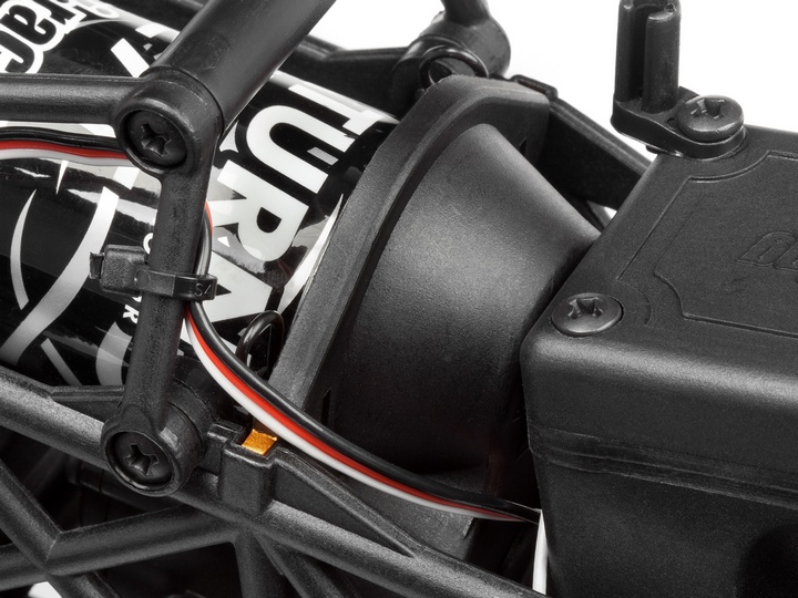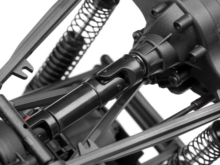Модель оснащена надежной трансмиссией на подшипниках, что обеспечивает долговечность и уменьшает трение. Маслонаполненные амортизаторы с ходом 152.4 мм и большие грязевые шины Mud Thrasher диаметром 5.4" обеспечивают идеальную устойчивость и комфортное преодоление неровностей. Удобный доступ для замены аккумулятора упрощает процесс эксплуатации, а герметичный бокс для приемника защищает его от внешних воздействий.