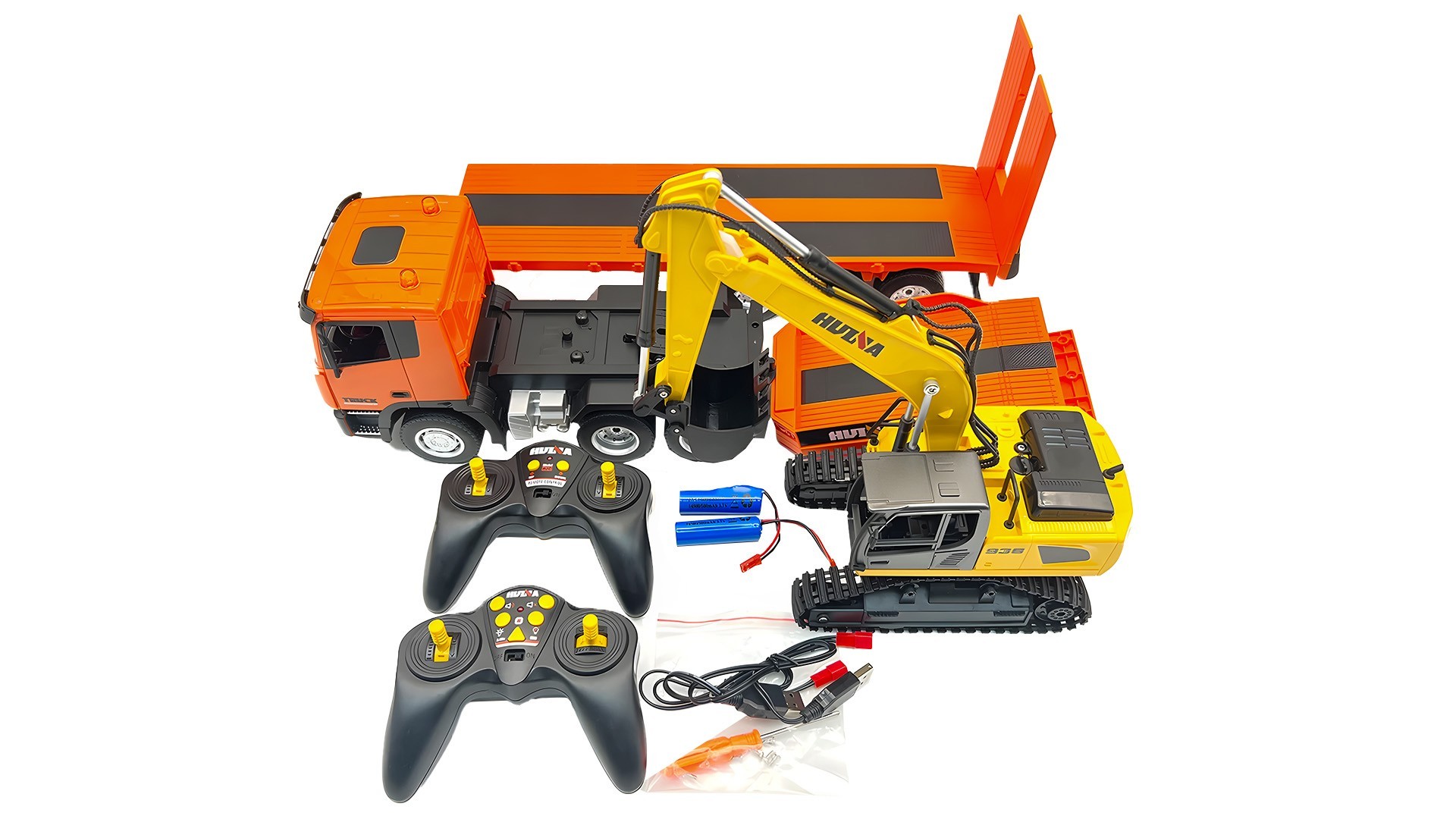 Модель оснащена современным радиоуправляемым управлением с частотой 2.4GHz, что обеспечивает стабильную связь на значительных расстояниях. Вы можете легко управлять движением тягача, а также подъемом и опусканием экскаватора, что добавляет элемент интерактивности и увлекательности в процесс игры. Высокая маневренность и простота в управлении позволят детям и взрослым насладиться часами веселых моментов.