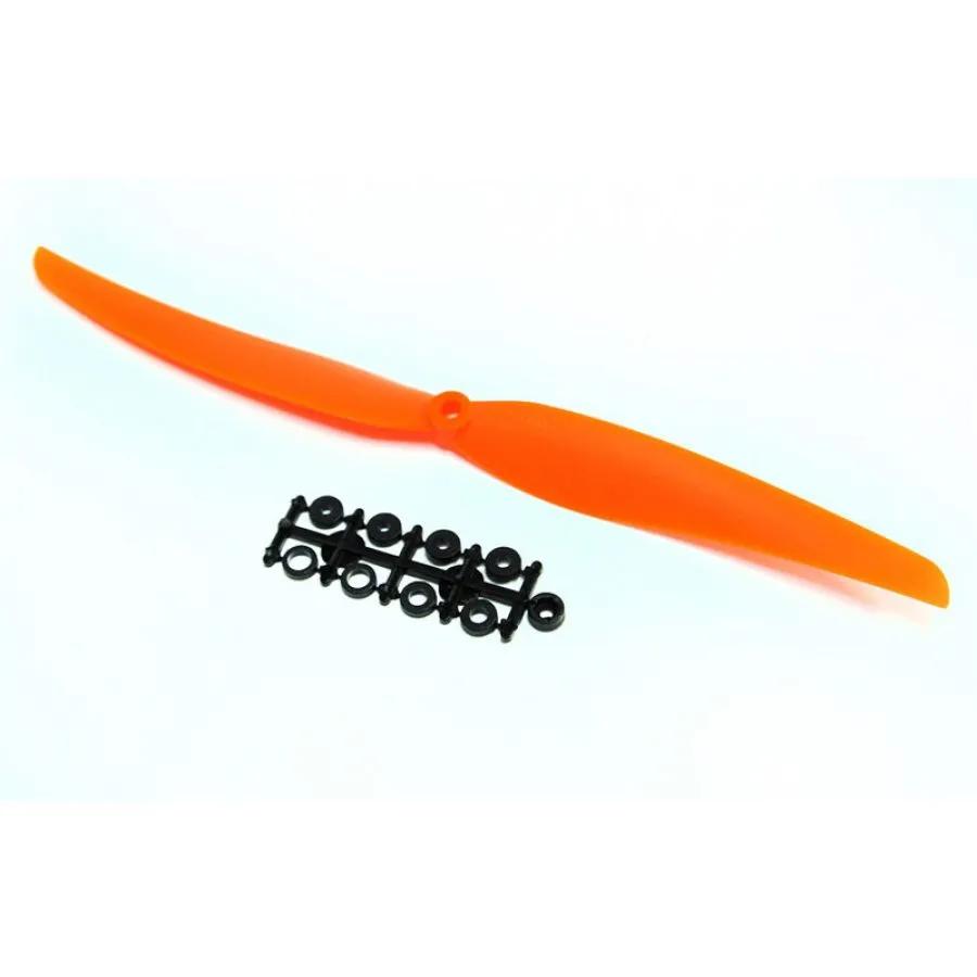 Яркий оранжевый цвет не только придает винту привлекательный внешний вид, но и обеспечивает его хорошую видимость в воздухе, что помогает контролировать полет на больших расстояниях. Наличие адаптерных колец позволяет легко установить винт на различные модели, что делает его универсальным решением для множества производителей и типовых конструкций авиамоделей.