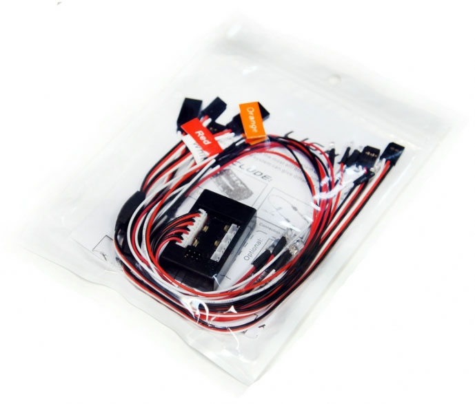 - Комплектация: блок управления, кабели, 4 белых светодиода 5 мм, 2 красных светодиода 3 мм, 2 желтых светодиода 3 мм, 2 синих светодиода 3 мм, инструкция.