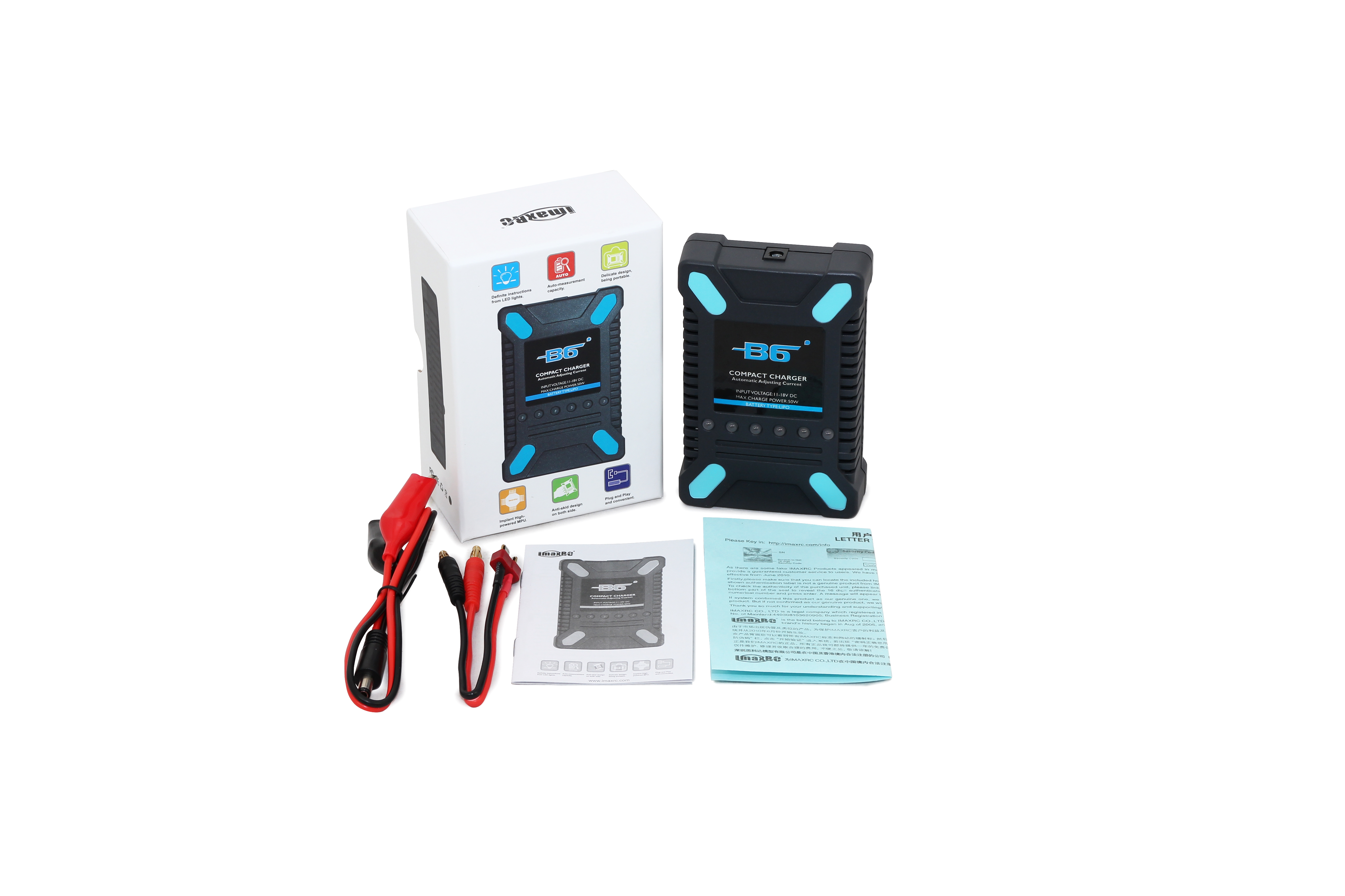 IMaxRC B6 Compact – это надежное и эффективное зарядное устройство, предназначенное для зарядки LiPo аккумуляторов с напряжением от 7.4 до 22.2 Вольт (2-6 ячеек). Оно оптимально подходит как для любителей радиоуправляемых моделей, так и для более опытных пользователей, обеспечивая высококачественную зарядку для всех типов моделей.