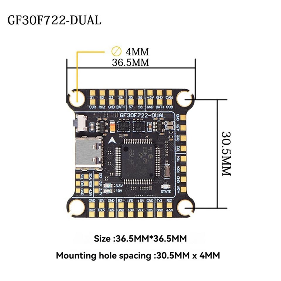 Дополнительно, GF30F722 поддерживает широкий диапазон входного напряжения от 3 до 6S, что позволяет увеличивать время полета без ущерба для производительности устройства. Наконец, система разработана с акцентом на простоту установки и интуитивно понятные настройки, что позволяет быстро подготовить дрон к полету.