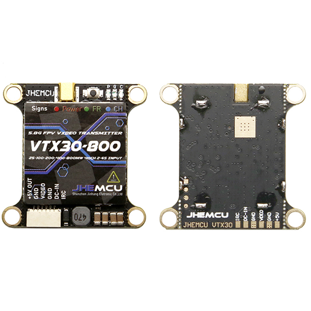 Видеопередатчик JHEMCU VTX30-800 — это высококачественное устройство, предназначенное для передачи видео на частоте 5.8 ГГц. С поддержкой 40 каналов и возможностью выбора выходной мощности на радиочастотах IRC PIT/25/100/200/400/800 мВт, данный видеопередатчик идеально подходит для использования в радиоуправляемых моделях и квадрокоптерах, обеспечивая стабильную связь и высокое качество изображения.