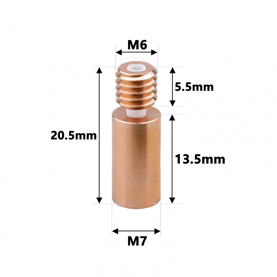 Термобарьер выполнен из прочных и термостойких материалов, что позволяет ему гарантировать надежность в условиях высоких температур. Медно-керамическое покрытие способствует улучшению теплоотведения, что особенно важно при печати с использованием высокотемпературных филаментов. Как результат, пользователь получает более высокое качество готовой продукции и меньшую вероятность засоров печатающей головки.