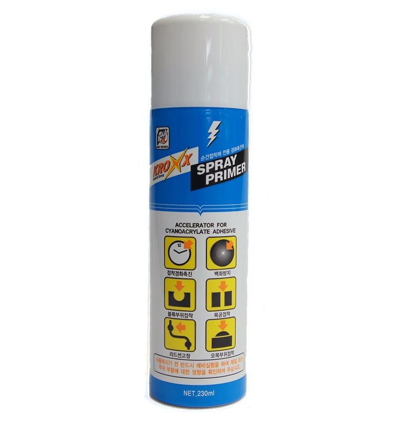 Kroxx Spray Primer объемом 230 г – это высокоэффективный активатор цианоакрилатного клея, предназначенный для улучшения склеиваемости материалов с низкой адгезией. Этот продукт позволяет превратить инертные поверхности, такие как полипропилен, полиэтилен, политетрафторэтилен и термопластовую резину, в пригодные для склеивания с помощью цианоакрилатных адгезивов Kroxx.