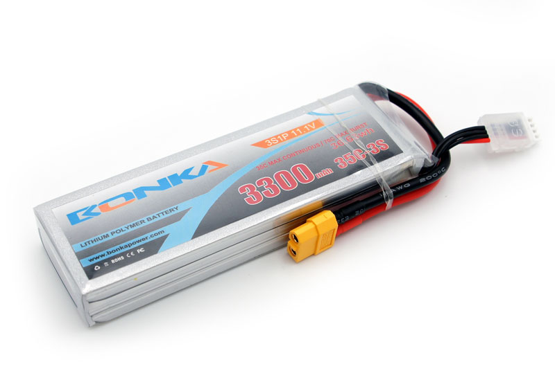 Аккумулятор Bonka выполнен в стандарте 3S1P с напряжением 11.1V и емкостью 3300 мАч. Разработанный с учетом современных требований, он обеспечивает отличные показатели разряда: 35C в номинальном режиме и 70C в кратковременном, что позволяет получить необходимую энергию для выполнения наиболее сложных маневров. Компактные размеры аккумулятора, всего 137x43x20 мм при весе 260 г, позволяют легко интегрировать его в любые конструкции.