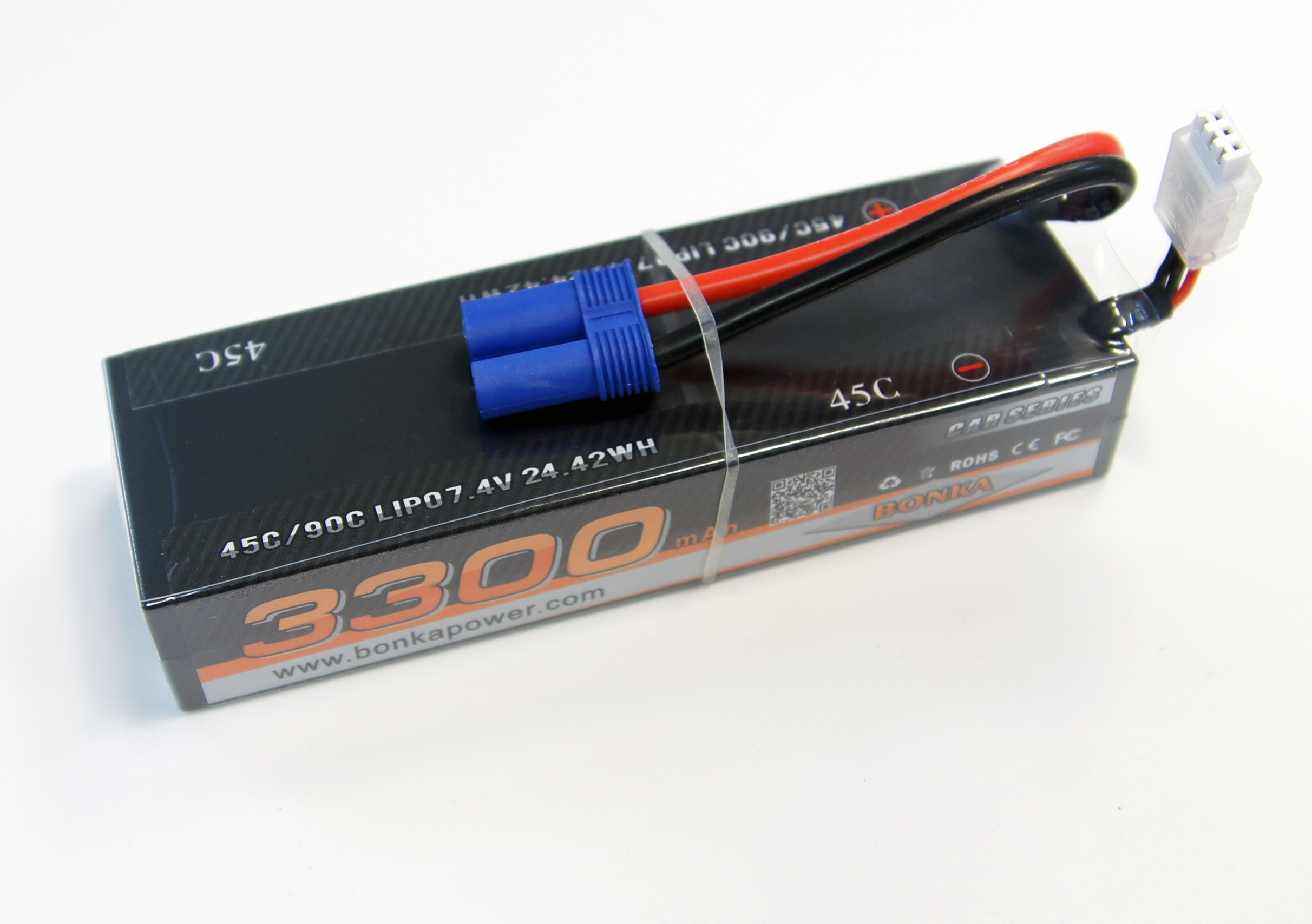 Модель имеет емкость 3300 мАч, что гарантирует стабильную подачу энергии и отличную отдачу даже при высоких нагрузках. Напряжение 7.4 В и рабочий ток разряда в 45C позволяют использовать данное устройство в самых требовательных приложениях. Также стоит отметить возможность кратковременного разряда до 90C, что открывает большие горизонты для динамичного вождения и гонок.
