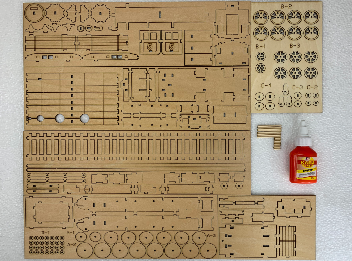 В состав набора входят все необходимые аксессуары для сборки: клей по дереву, инструкция с подробными шагами и наждачная бумага для обработки деталей. Это обеспечит качественный результат и минимизирует вероятность ошибок при сборке. Все элементы конструктора изготовлены из безопасных и качественных материалов, что делает его подходящим для детей от 8 лет.
