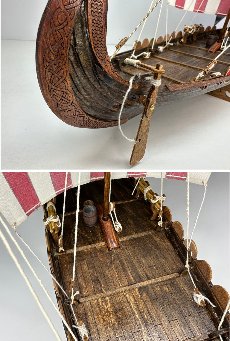 Эта модель подойдёт как для начинающих моделистов, так и для тех, кто уже имеет опыт в создании сборных моделей. Сборка драккара станет отличным семейным занятием и поможет развить усидчивость, внимание к деталям и навыки координации. После завершения работы над моделью, вы получите не только уникальный предмет интерьера, но и замечательный инструмент для сюжетных игр, которые вдохновят на новые приключения.