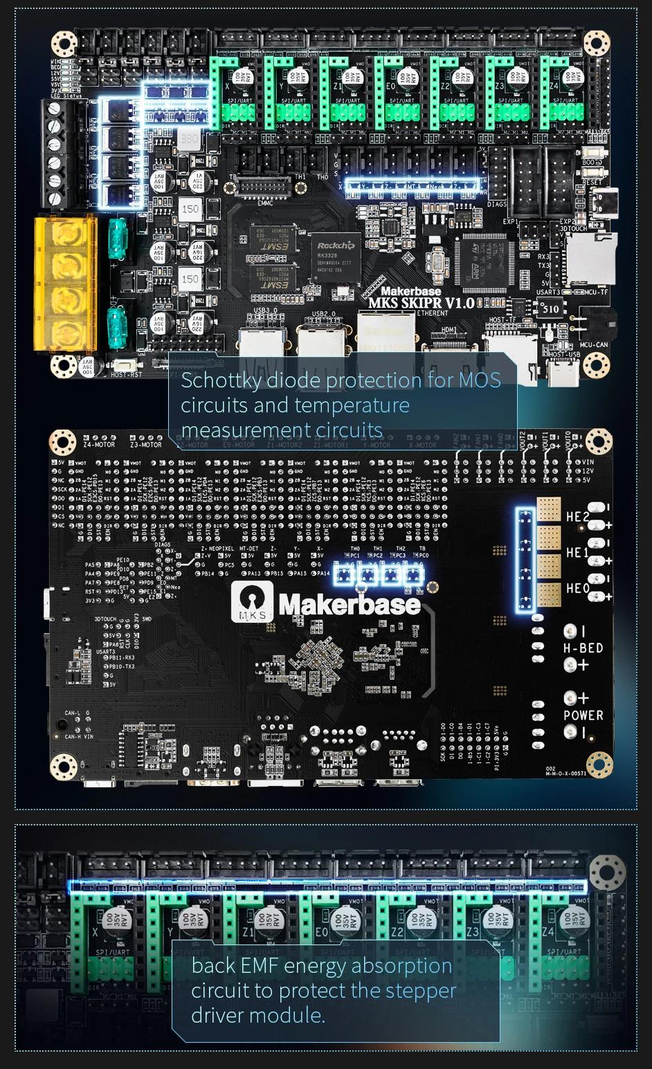 MKS SKIPR предлагает множество разъемов для подключения различных комплектующих, что облегчает сборку и модернизацию ваших устройств. Поддержка множества типов драйверов шаговых двигателей позволяет обеспечить отличное качество печати и надежную работу механики. Благодаря постоянным обновлениям прошивок, плата предоставляет пользователю новые функции и улучшения, обеспечивая актуальность вашего оборудования.