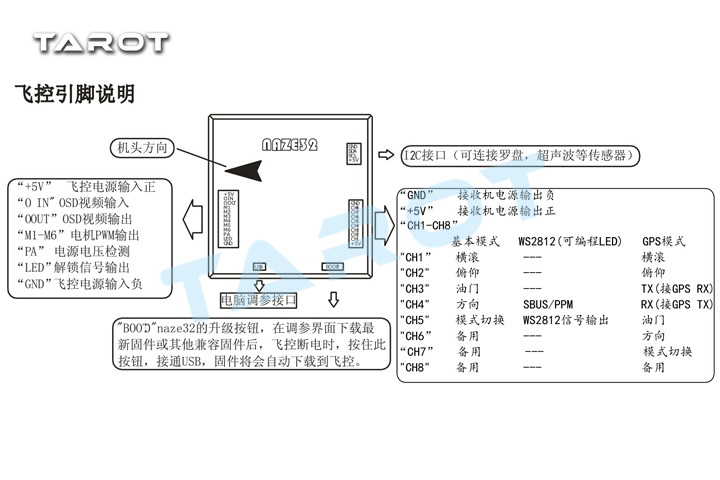 Полетный контроллер Naze 32 (6DOF) представляет собой высокотехнологичное решение для управления гоночными миникоптерами. Этот контроллер с открытым кодом от бренда Tarot обеспечивает высокую производительность и стабильность полетов благодаря современным компонентам. Встроенный 32-битный микропроцессор STM32F103CB позволяет добиться быстрой реакции и надежного управления, что особенно важно в условиях соревнований.