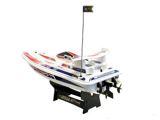 Простой и интуитивно понятный пульт дистанционного управления позволяет легко управлять катером: двигаться вперёд, поворачивать направо или налево, а также остановиться в любой момент. Радиус действия пульта составляет около 100 метров, что дает возможность исследовать большие водные пространства, не опасаясь за потерю управления. Данная модель оснащена аккумулятором большой ёмкости, способным обеспечить 15-30 минут активной игры. Кроме того, электродвигатель обладает системой водяного охлаждения, что позволяет избежать перегревания во время длительного использования.