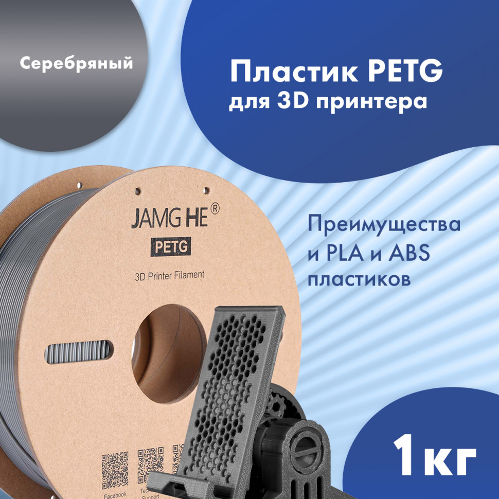 В наше время PETG стал одним из наиболее популярных материалов для 3D-печати, и это не случайно. Он объединяет в себе множество преимуществ, которые делают его идеальным выбором как для профессионалов, так и для любителей. Серебристая нить PETG от бренда JAMG HE весом 1 кг обладает прекрасными характеристиками, которые обеспечивают высокое качество печати.