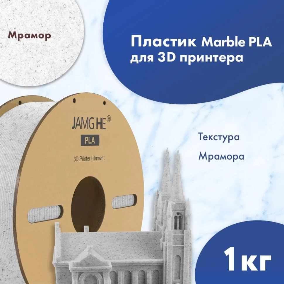 PLA 1кг мраморный Jamg He.Marble PLA – это высококачественный материал для 3D-печати, который придаст вашим проектам элегантный и реалистичный вид. Изготавливаемый из фрагментов измельченного мрамора, этот пластик обеспечивает впечатляющую текстуру и насыщенные цвета. Благодаря своей уникальной формуле, Marble PLA легко обрабатывается на большинстве 3D-принтеров, что делает его отличным выбором как для профессионалов, так и для любителей.