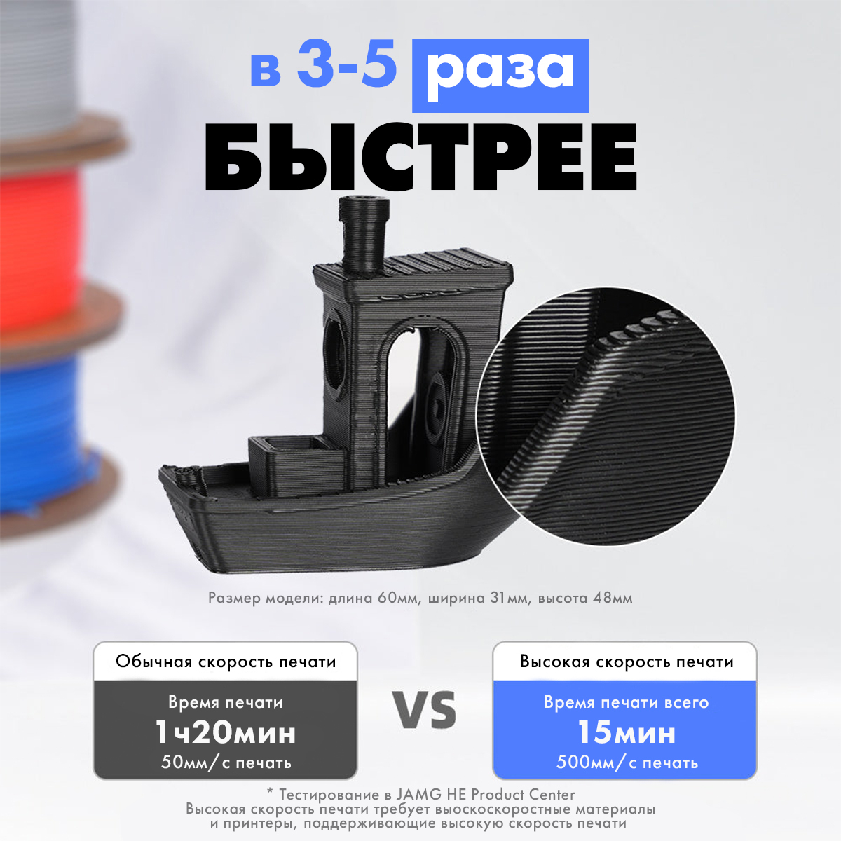 Скорость печати этого материала может достигать 500 мм/с, что делает его отличным выбором для профессионалов и энтузиастов, стремящихся оптимизировать процесс изготовления. Пластик PLA+ Hi-Speed от JAMG HE — это надежный и эффективный продукт, который удовлетворит потребности даже самых требовательных пользователей.