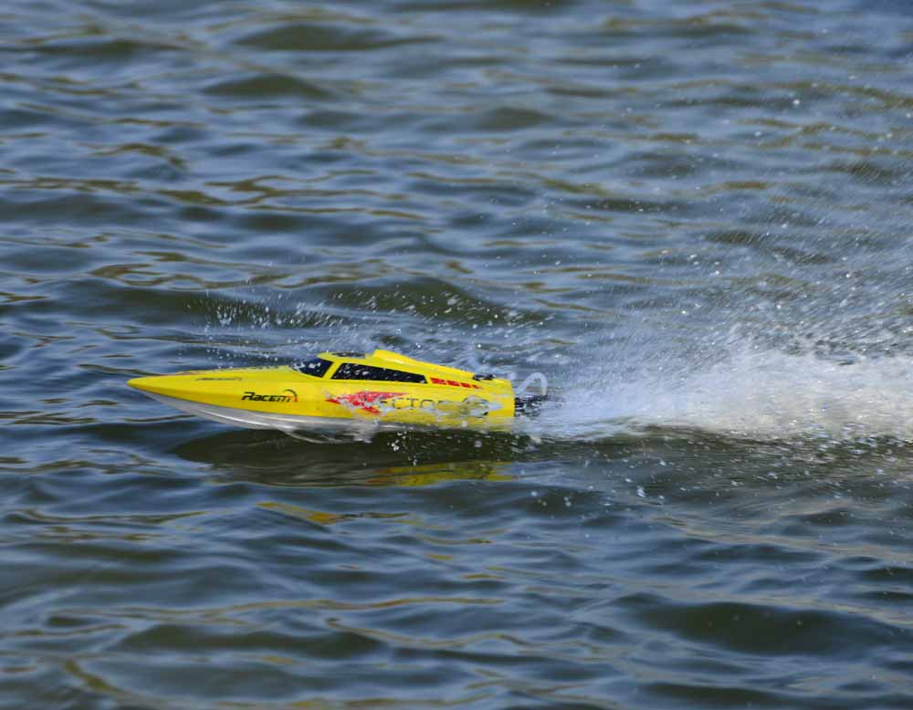 Несмотря на свои компактные размеры, катер обладает мощным коллекторным электродвигателем класса 390, который позволяет развивать уверенную скорость. Объемный аккумулятор на 7,2 В и 900 мАч обеспечивает продолжительное время работы, позволяя наслаждаться гонками без частых перерывов.