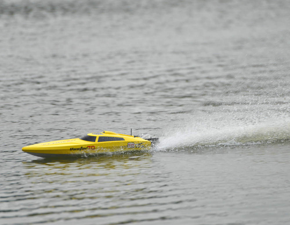Катер оснащён современными технологиями, такими как аппаратура управления с помехозащитной частотой 2,4 ГГц, что позволяет избежать interference и сделать управление более надежным. В сочетании с водяным охлаждением для двигателя и регулятора оборотов, Volantex Vector 70 Brushless демонстрирует высокий уровень производительности и безопасности в работе.