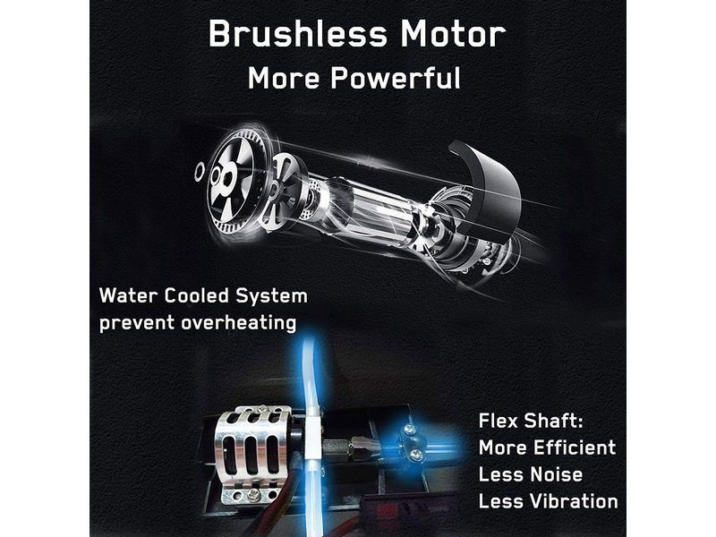 Современная система водяного охлаждения аккуратно поддерживает оптимальную температуру двигателя, предотвращая его перегрев в процессе работы. Катер оборудован высококачественным бесколлекторным электродвигателем и регулятором оборотов с водяным охлаждением, что создает идеальные условия для долгих и ярких гонок.