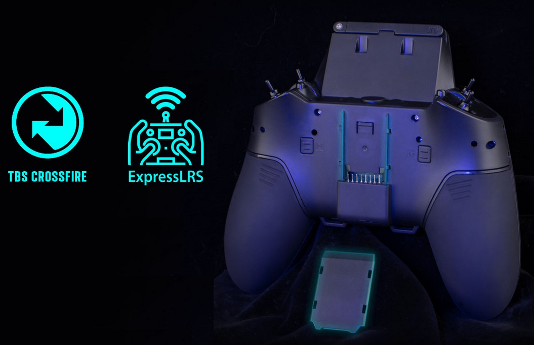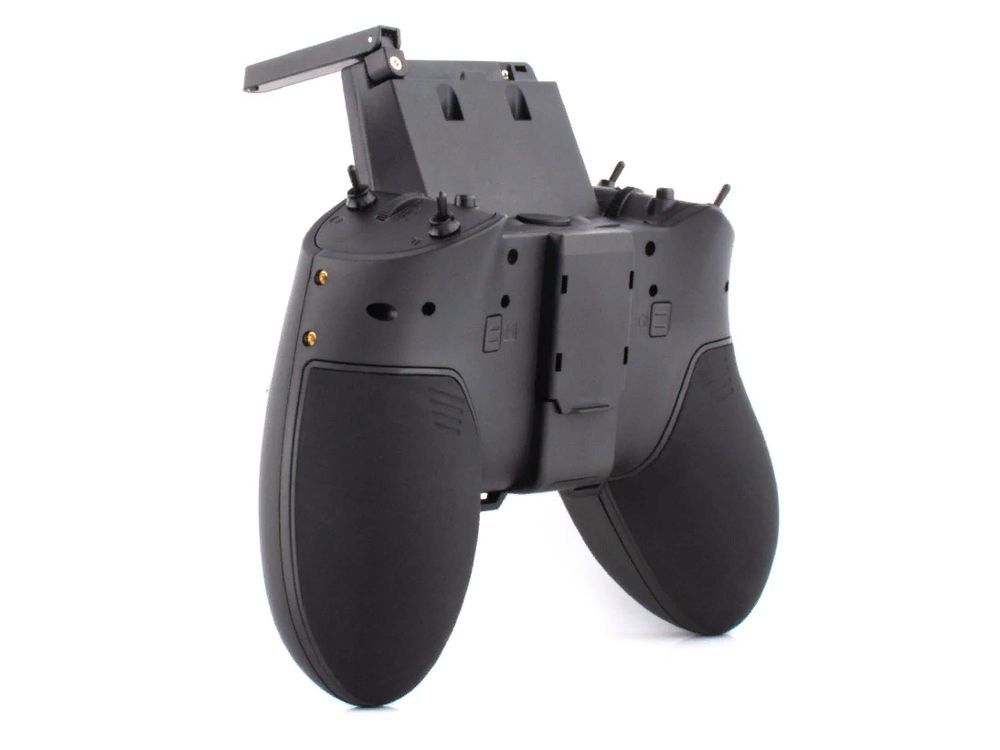 На задней панели устройства размещены необходимые порты: USB-C для зарядки и обновления прошивки, а также отсек для внешнего радиочастотного модуля. Возможность смены режимов работы между «Mode 1» и «Mode 2» без разборки сделает управление еще более интуитивным. Особого внимания заслуживает возможность подключения внешнего источника питания, что продлевает время работы устройства на полетах.