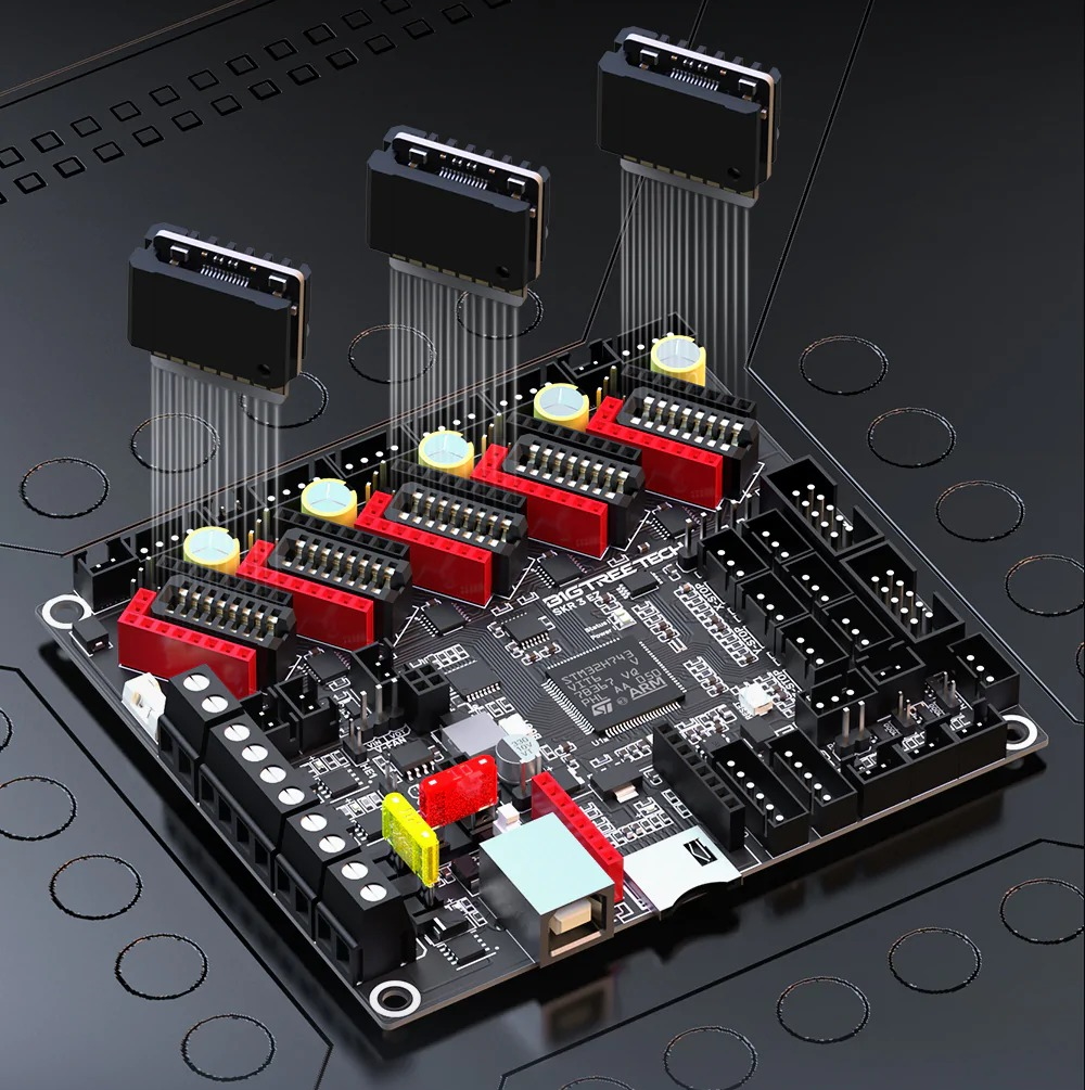Подключаемость и совместимость также являются сильными сторонами этой платы. Она поддерживает разнообразные прошивки, такие как Marlin и Klipper, и различные интерфейсы для подключения датчиков и оборудования. Это делает плату универсальным решением для самых разных моделей 3D-принтеров, включая системы с разными типами кинематики.