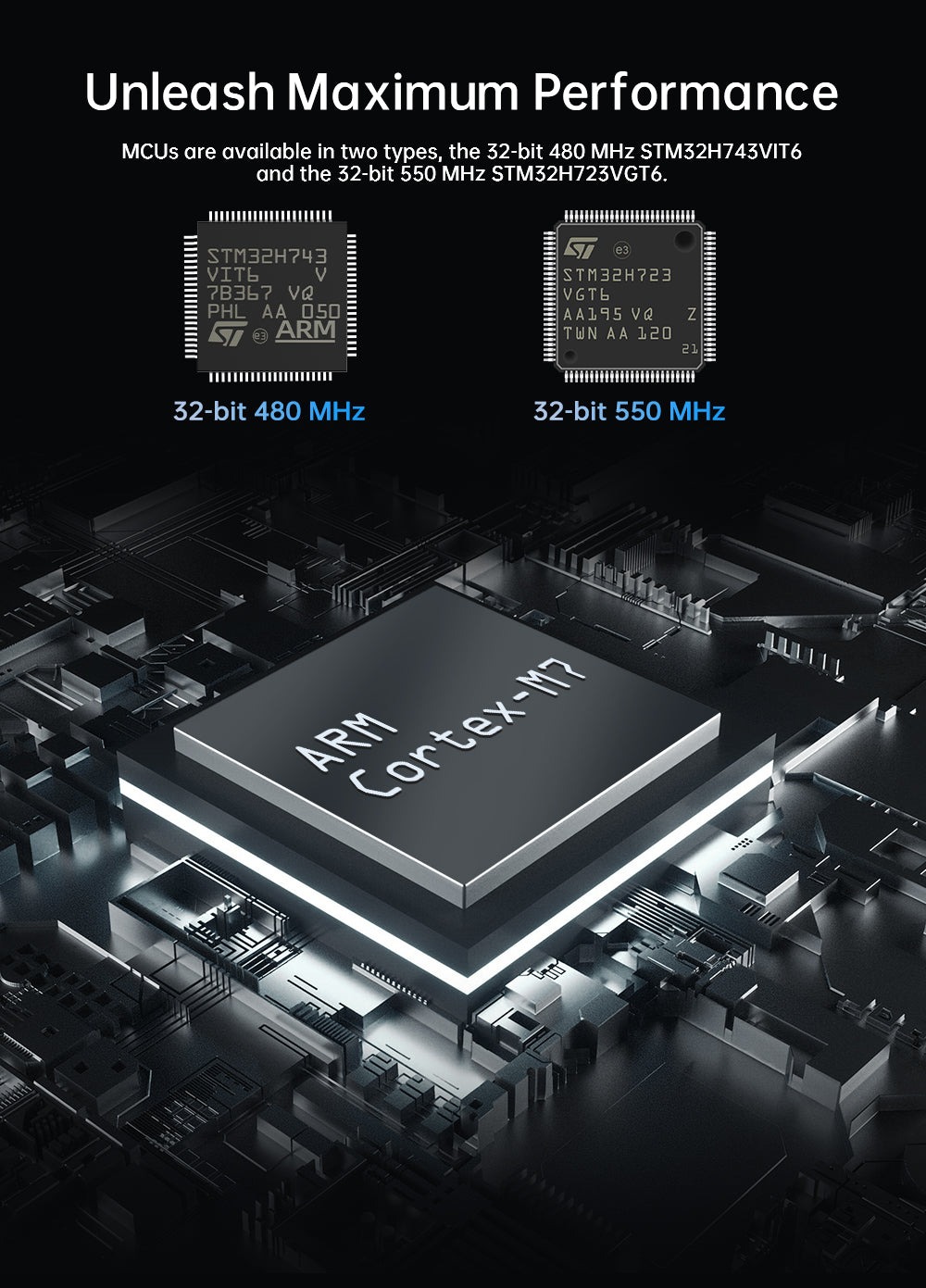 - Микропроцессор: ARM Cortex-M7 CPU STM32H723VIT6