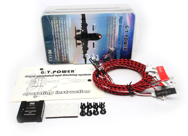 Световая система БАНО от G.T.Power — идеальный аксессуар для радиоуправляемых авиамоделей и вертолётов. Эта комплектная система состоит из восьми светодиодов, каждый из которых выполняет свою функцию, создавая эффект реального самолета. В комплект входят красные огни, которые служат для предотвращения столкновений, белые проблесковые огни, а также навигационные и посадочные огни. Такой набор освещения придаст вашей модели максимальную реалистичность и безопасность во время полетов.
