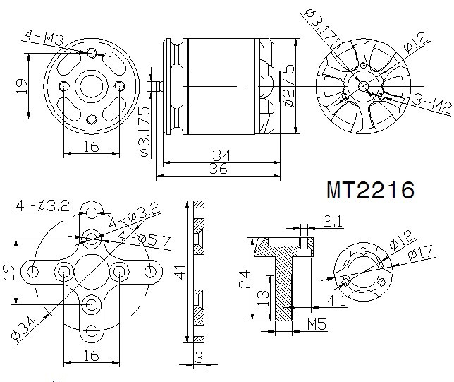 Модель MT 2216-12 конструктивно выполнена в форме outrunner и весит всего 75 граммов, что делает ее легкой и компактной для установки в различные воздушные модели. Подшипники и статерное железо привезены из Японии, что подтверждает высокие требования к качеству используемых материалов. В характеристиках статора применены тонкие пластины с эпоксидным покрытием, что обеспечивает надежную защиту от коротких замыканий. Кроме того, медный провод намоток имеет специальную изоляцию, способную выдерживать температуры до 180°C, что является важным аспектом для стабильной работы мотора при высокой нагрузке.