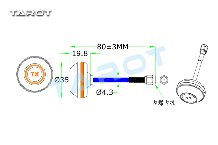 Антенна Tarot 5,8 ГГц (грибок) TX представлена в виде компактного решения для FPV видеопередатчиков, обеспечивая надежное соединение и высокое качество передачи сигнала. Это антенна-клевер с правой круговой поляризацией (RHCP), что делает её идеальным выбором для различных применений, включая гонки на квадрокоптерах и другие виды дронов.