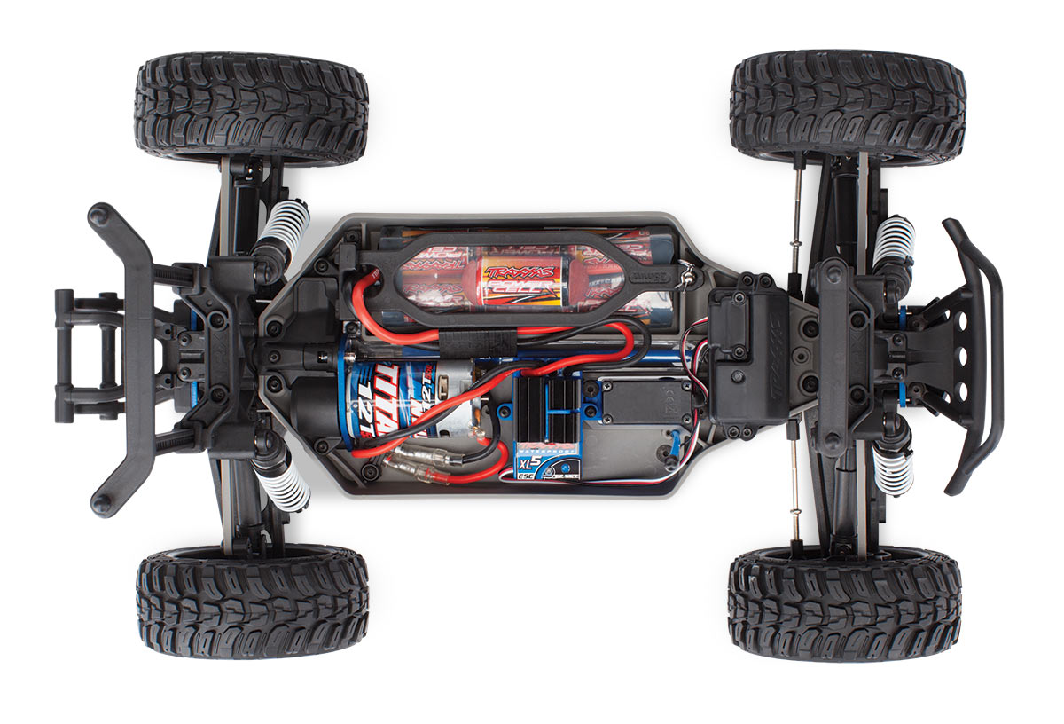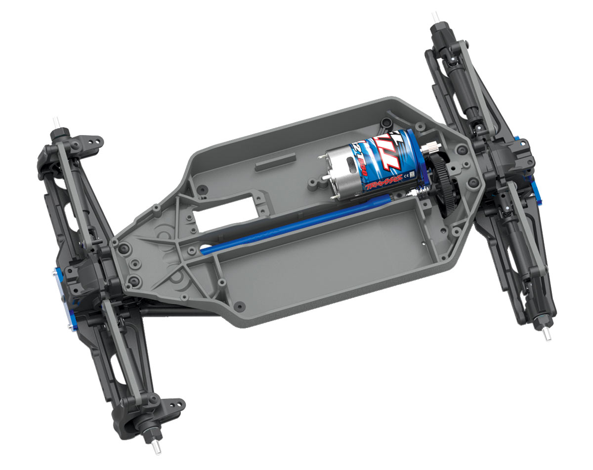 Модель оснащена мощным коллекторным мотором Traxxas Titan 550 с 12 витками, который уверенно справляется с любыми препятствиями. Влагозащищенный регулятор Traxxas XL-5 поддерживает LiPo аккумуляторы и предлагает несколько режимов работы, включая режим тренировок и спортивный стиль вождения. Полностью независимая подвеска и масляные амортизаторы гарантируют отличную управляемость и комфорт даже на сложных маршрутах.