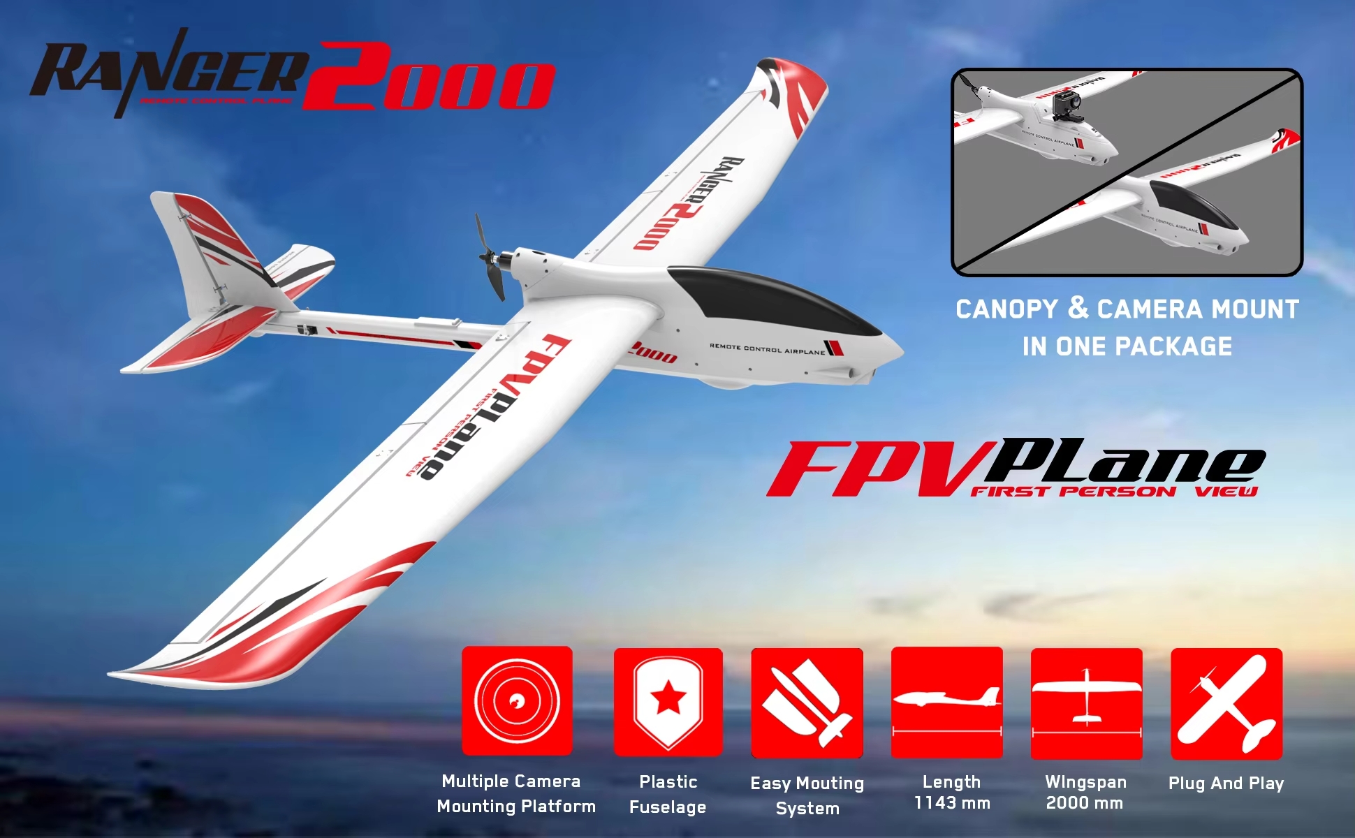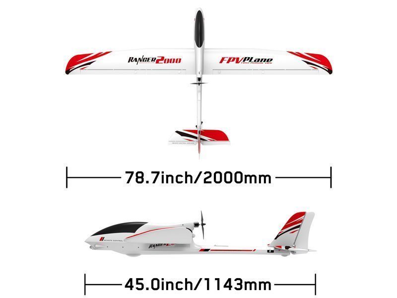 Ranger 2000 предназначен не только для развлечения, но и для серьезных FPV полетов — это означает, что он идеально подходит для установки курсовых и экшн-камер, что позволяет осуществлять полеты с видом от первого лица. В носовой части устройства предусмотрено специальное пространство для размещения электроники, а также места для охлаждения, что особенно важно для длительных полетов. Угол наклона моторамы изменен, что значительно повышает аэродинамическую эффективность и улучшает маневренность планера.