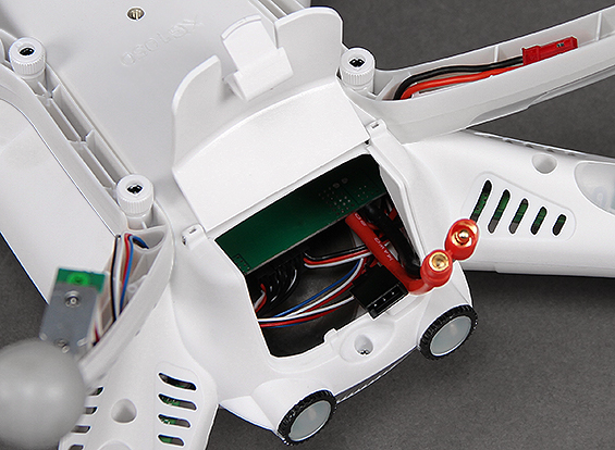 На борту находятся 4 бесколлекторных электродвигателя, 4 регулятора скорости, GPS-приемник, LiPo аккумулятор с большой емкостью, что вкупе с современным пультом управления DEVO-F7, обладающим LCD экраном, обеспечивает дальность управления до километра.