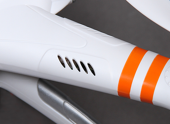 Корпус квадрокоптера выполнен из прочного пластика, который обеспечивает защиту внутренних компонентов, а система охлаждения регуляторов скорости предотвращает перегрев во время эксплуатации. Яркие светодиоды, расположенные на лучах квадрокоптера, помогают ориентироваться в темное время суток.