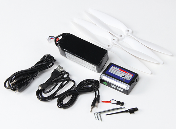 - Комплект поставки: квадрокоптер, пульт управления, 2-х осевой подвес, аккумулятор для пульта, аккумулятор для квадрокоптера, комплект лопастей, зарядное устройство, инструменты.