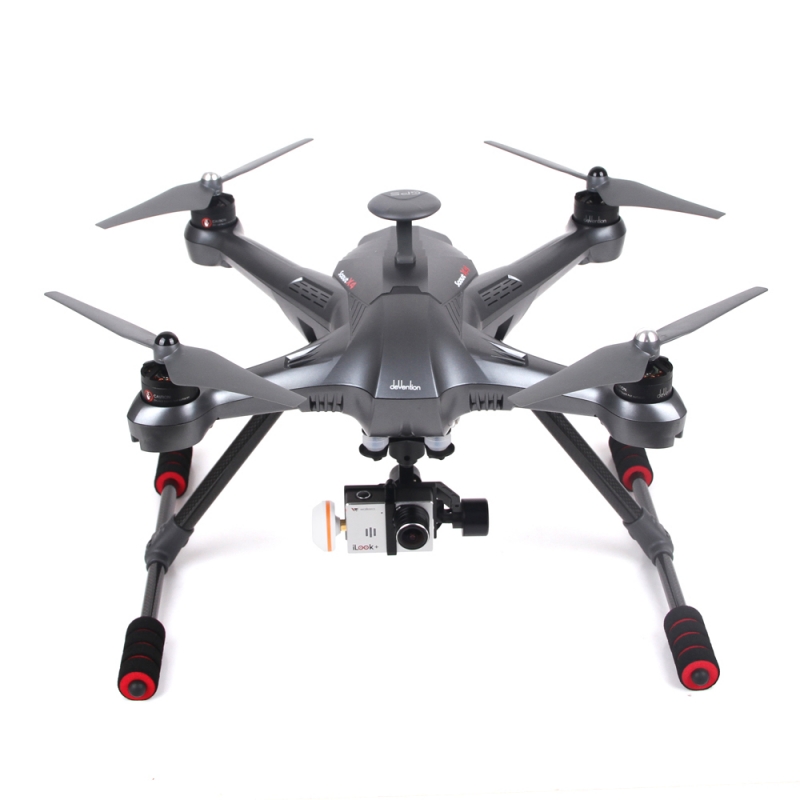 Модель комплектуется радиоаппаратурой DEVO F12E, которая позволяет управлять квадрокоптером с максимальной точностью. На дисплей передатчика выводятся данные телеметрии и изображение с камеры iLook+, что значительно облегчает процесс управления и съемки. К тому же, вы можете настраивать различные режимы полета и контролировать положение камеры по двум осям для получения идеальных кадров.