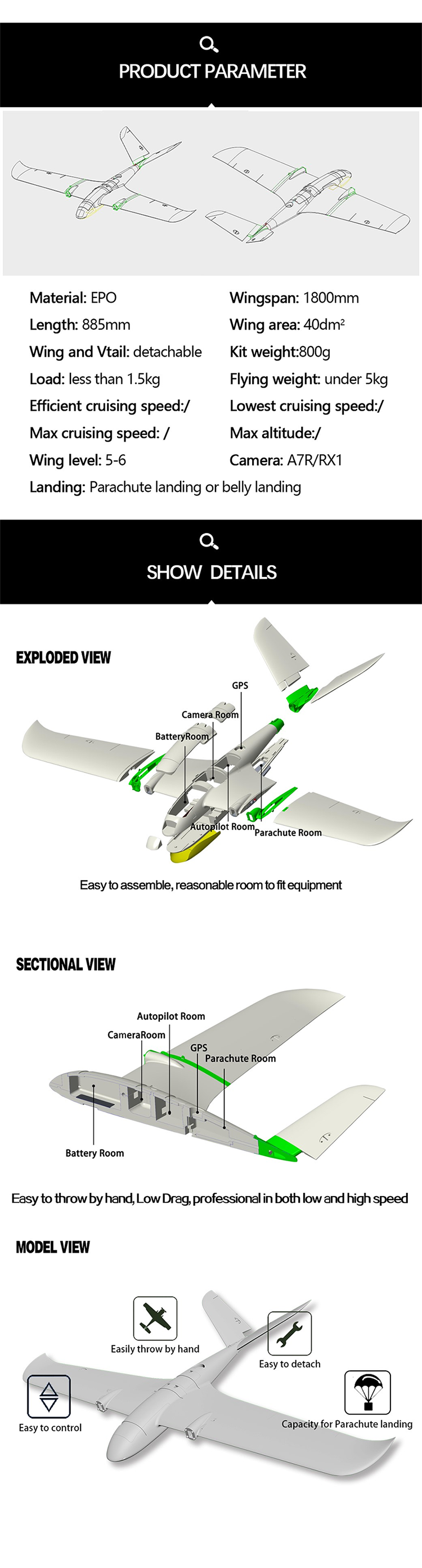 - Размах крыла: 1800 мм